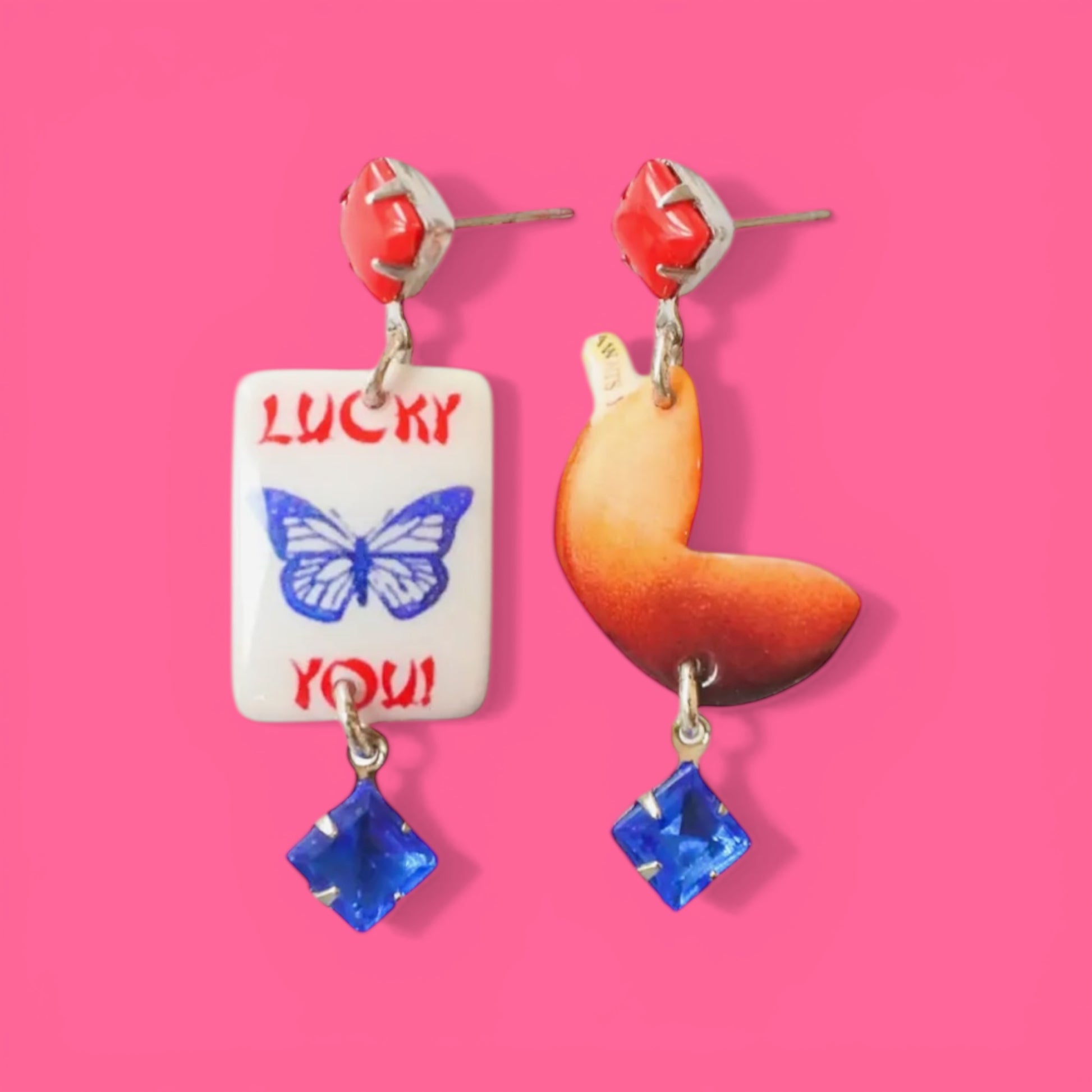 Fabulous hand-made dangle set by Haricot Vert featuring picto-charms and surgical grade steel.